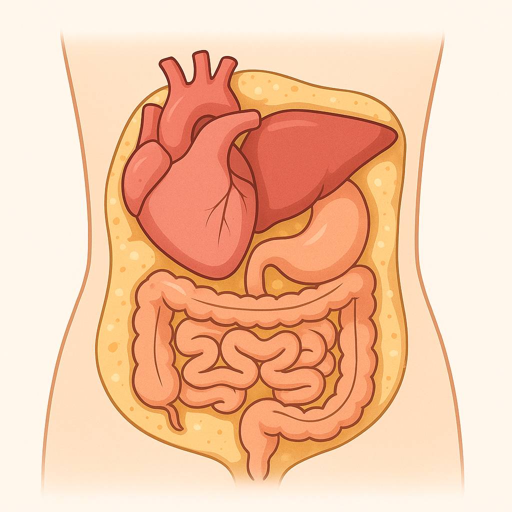 La graisse viscérale — c'est la graisse profonde qui comprime littéralement votre cœur, vos reins, votre foie et d'autres organes.